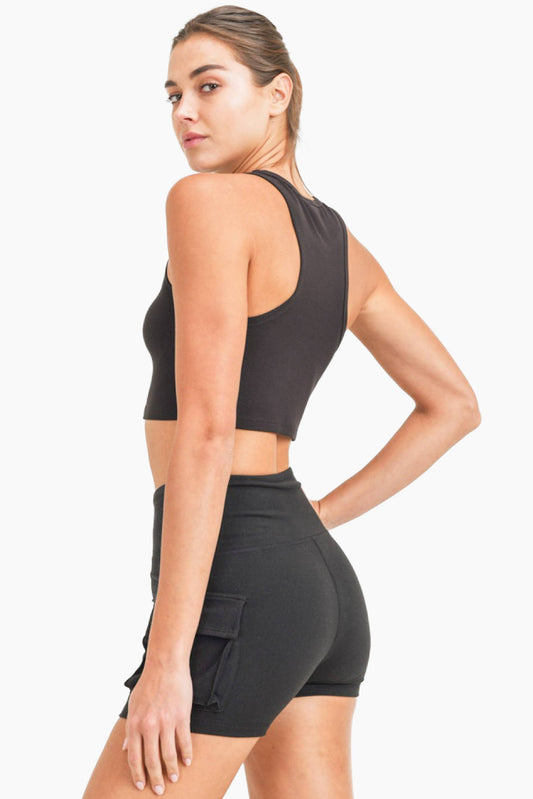 Essential Micro-Ribbed Cropped Racer Athleisure Tank Top