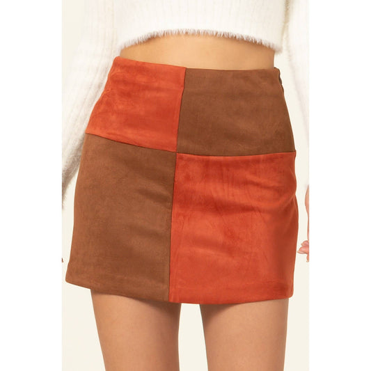 HF22H708-FAUX SUEDE COLOR BLOCK MINI SKIRT